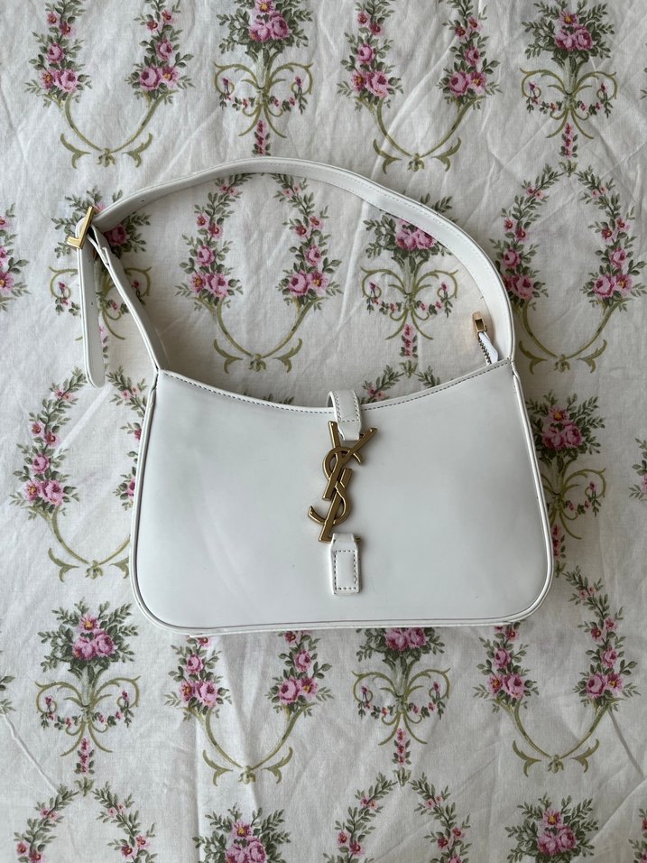Beyaz deri çanta, vintage tarzda, tokalı kapama ve baskılı desenle Paris havası ve bohem dokunuş sunar. Günlük kullanıma uygundur. Ysl çanta. Hiç kullanılmadı.
