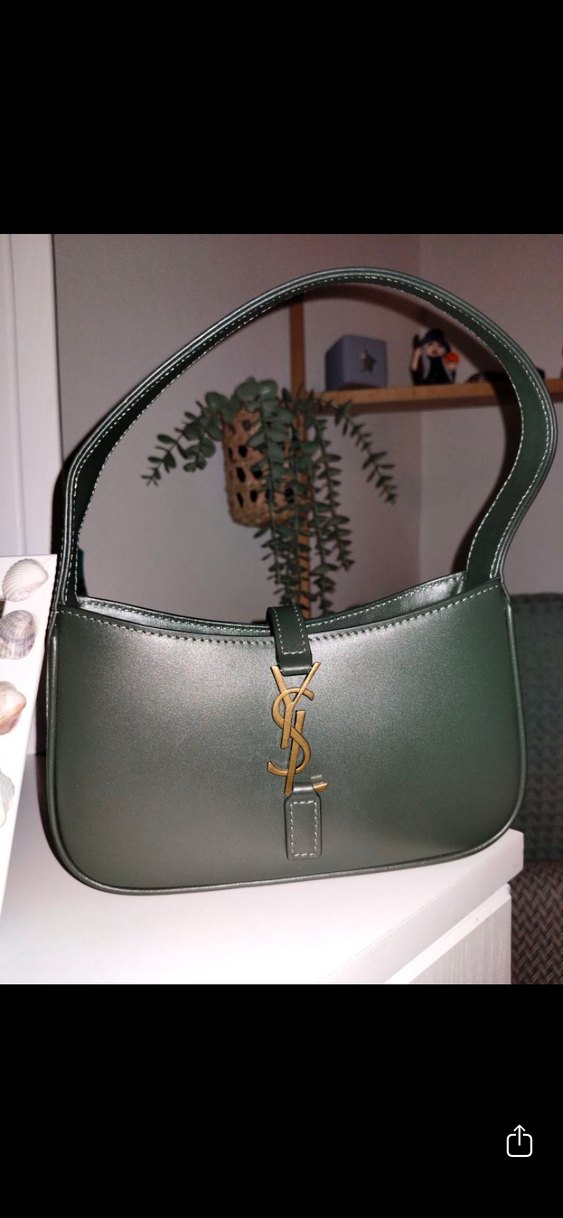tamamen deridir içinde orjınallık kodu mevcut 2 kez kullandım mıni boydur tif birkaç şey sıgar ürün en üst sekmen dir orjınalı ile birer birer dir.Yeşil parlak deri çanta, tokalı kayış ve YSL logosu ile cesur sokak tarzına uygun.