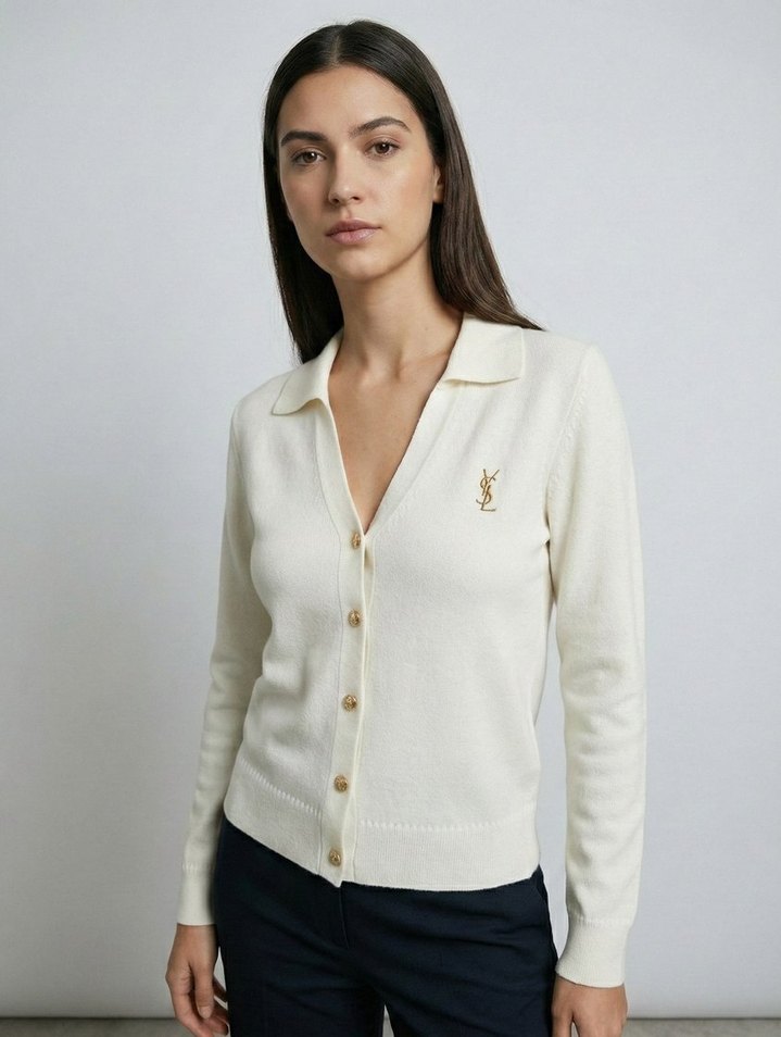YSL Düğmeli Triko Beyaz Kadın Hırka