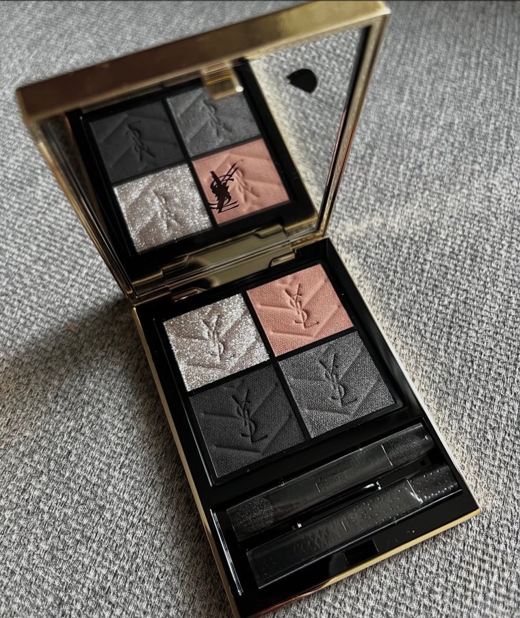 YSL göz farı paleti, mat ve ışıltılı dokuda koyu ve gri tonlar içerir. Aynalı ve aplikatörlü kutuda sunulur.
