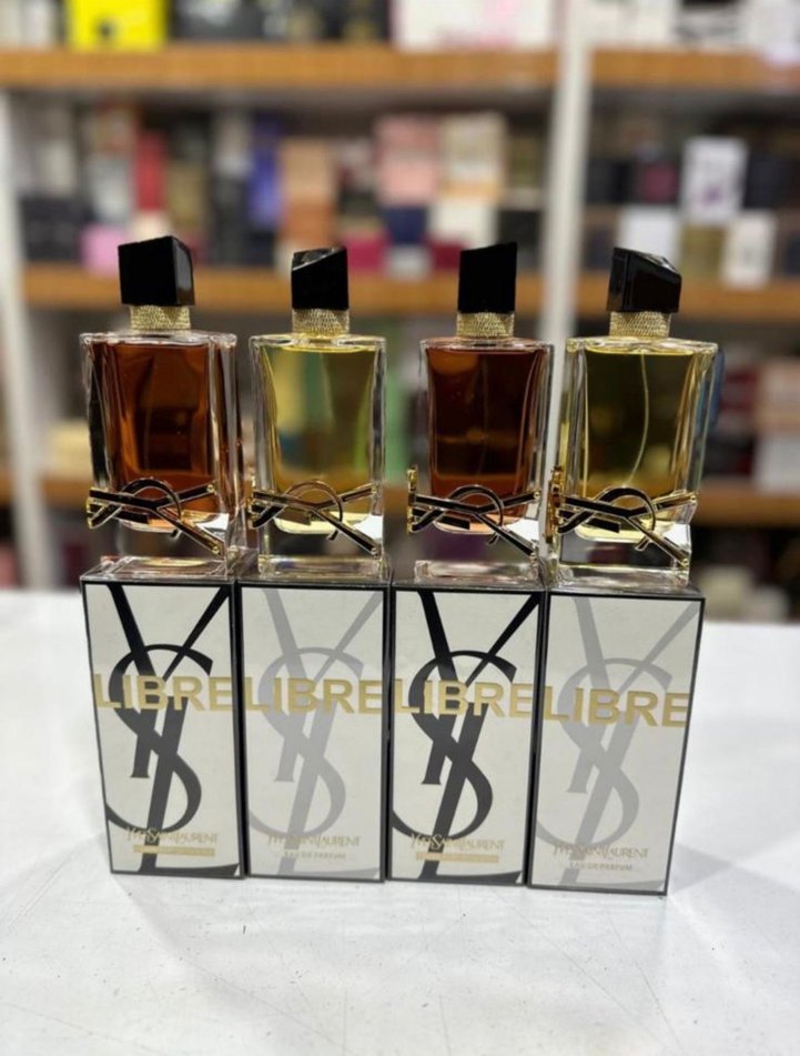 YSL Libre kadın parfümü seti, şık siyah kapak ve altın detaylara sahip dört farklı kokudan oluşuyor. Kutularında YSL logosu ve Libre yazısı yer alır.