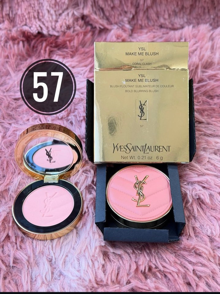 Yves Saint Laurent Make Me Blush 57 numara, parlak pembe renkte 6g allık. Şık YSL logolu kompakt içinde, yüzünüze parlaklık katar.