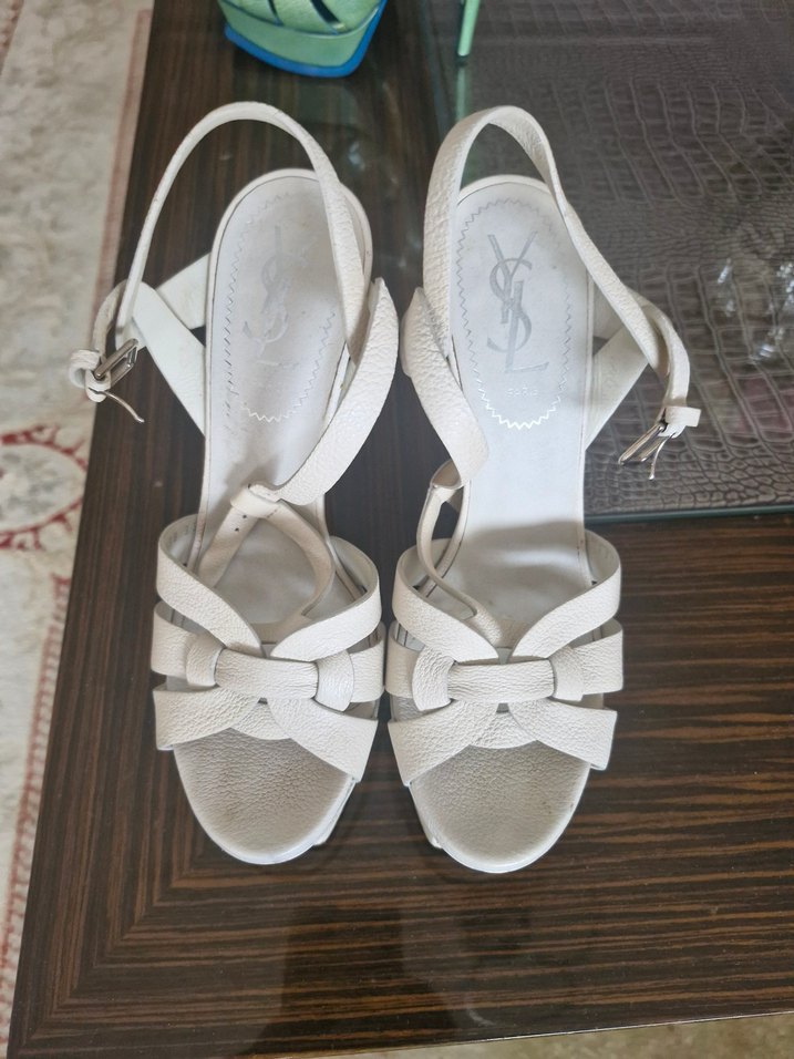 YSL MARKA Beyaz Dolgu Topuklu Kadın Abiye Ayakkabı