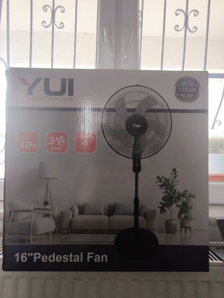 YUI 16" ayaklı vantilatör, 40W güç ve 3 hız ayarı ile etkili hava akışı sağlar. Siyah renktedir ve 2 yıl garantilidir. ️ SIFIR ÜRÜN