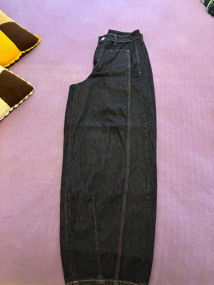 Yüksek bel baggy jean, bir kere giydim ve beli bana biraz bol, bacak kısımları da bol ve yüksek bel milla ürünü, kemeri hiç kullanmadım