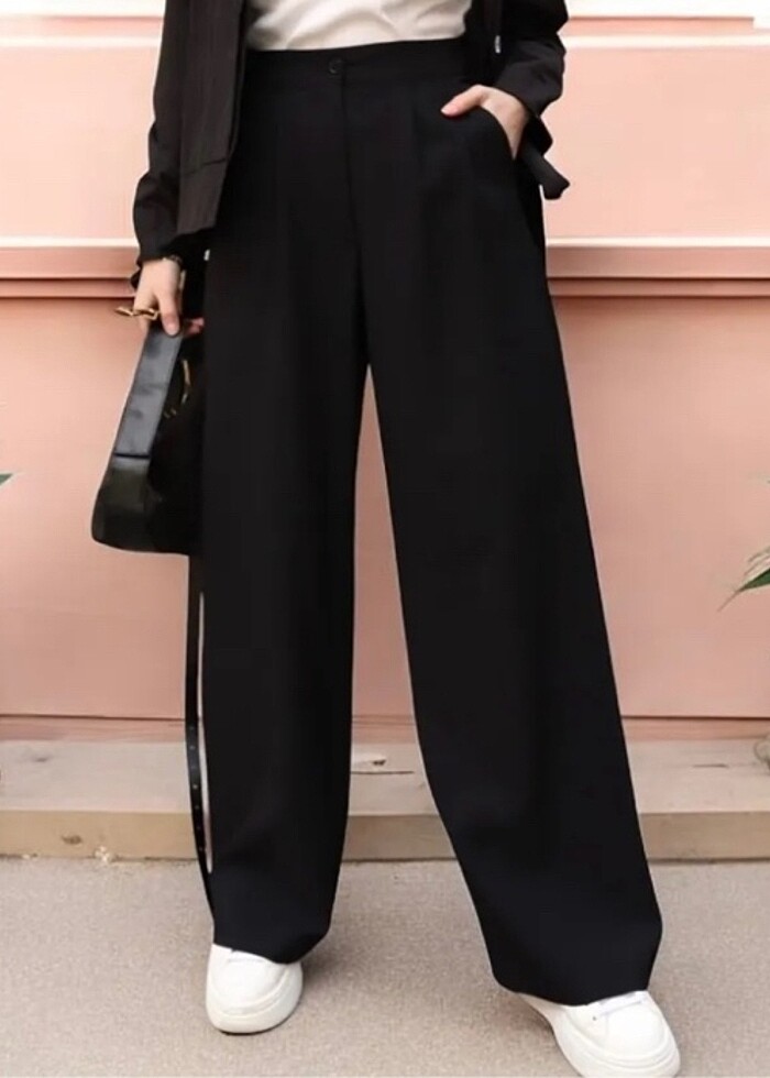 Yüksek Bel Bileli Palazzo Pantolon