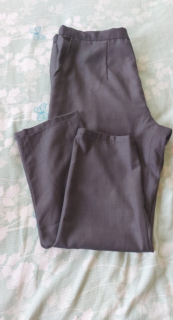 Gri Yüksek bel cepli.Bel genişlik 100cm.Tam boy 96 cm.Hediye geldi.Bedeni uymadığı için giyinilmedi.Kumaş pantolon.Kemer detayıyla günlük kullanıma uygun şık bir parça.