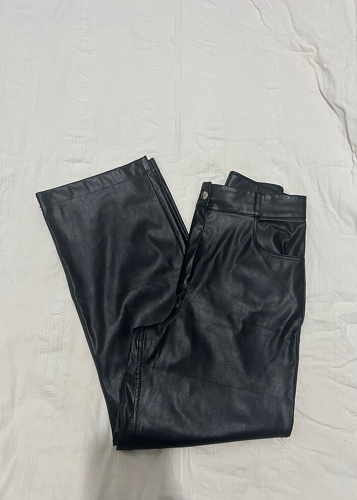 36 (S) beden. Yüksek Bel,metal düğme ve fermuarlı,suni deri pantolon. Birkaç kez giyildi,hiçbir sorunu yoktur. Boy:95 cm