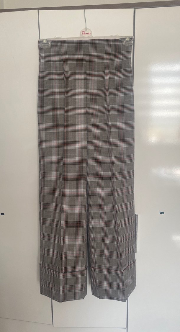 Geniş bacak kesim,bel kısmı oturur,duble paça,mevsimlik kumaş,yandan fermuarlı,Zara marka,38 beden.1kere giyildi