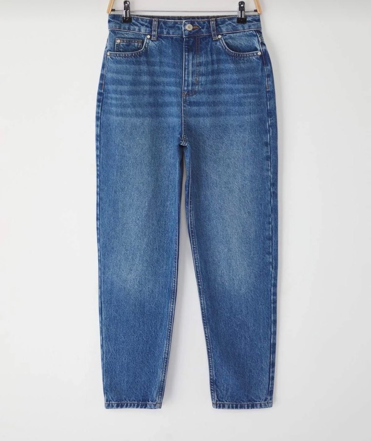 Yüksek bel koyu mavi mom jean