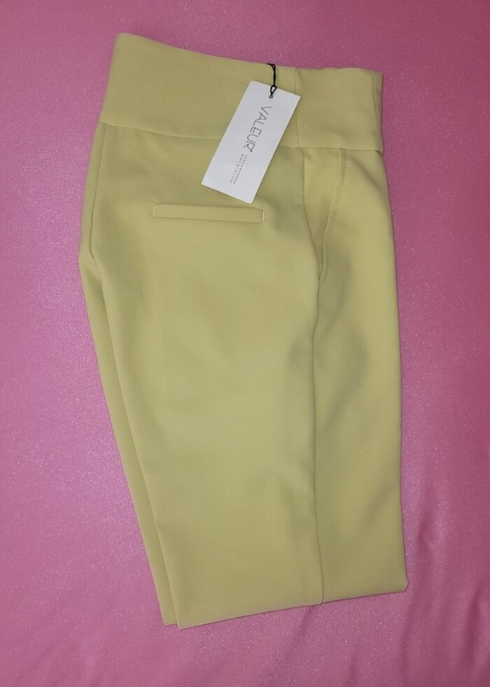 rengi fistik yeşili fotoğraflarda net belli olmuyor malesef, hiç kullanılmadı etiketli duruyor, kilo aldığım için içine giremiyorum :( yüksek bel dar paça olan bir modeldir, arkasında minik bi çizgi var aldığımda farketmemişim pek belli olmuyor ama yine de belirteyim