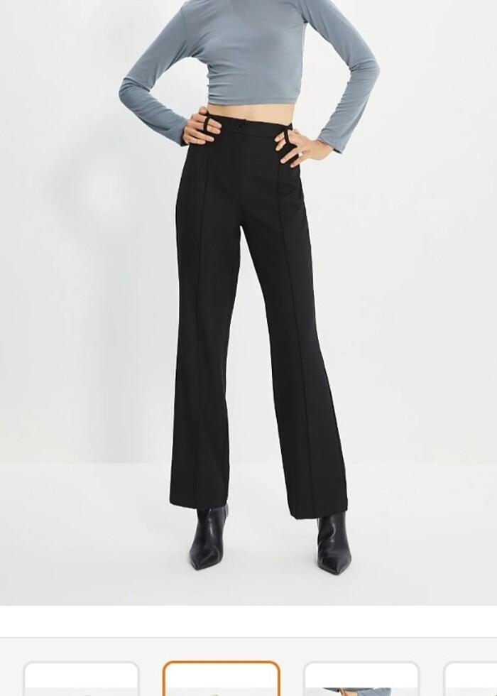 Yüksek Bel Nervür Dikişli Kadın Kumaş Pantolon