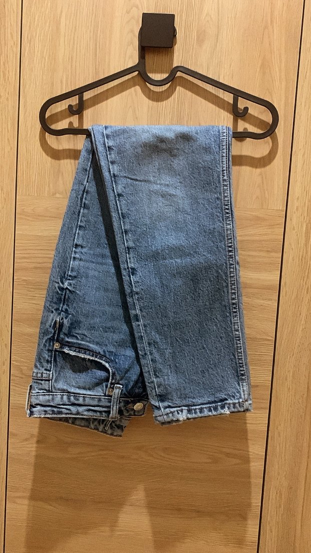 Kadınlar için midi boy, regular fit mavi denim kot pantolon, tokalı detaylı, günlük kullanıma uygun.