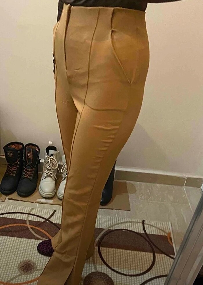 Trendyol milla marka,yüksek bel,paçaları yırtmaçlı,ürün resimdeki gibi duruyor,kullanılmamıştır,rengi açık kahvedir.