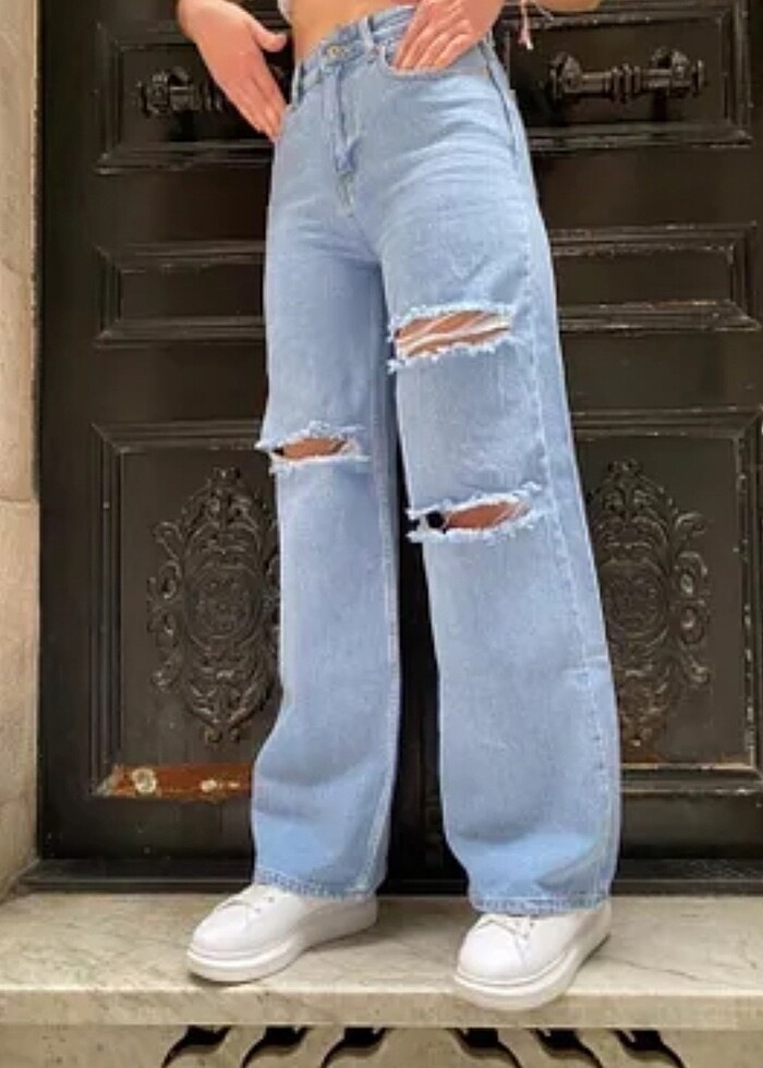 Kot jean yırtmaçlı model pantalon