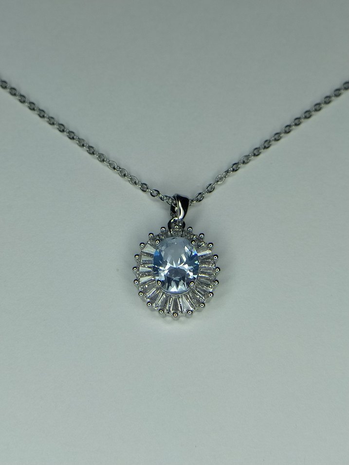 Kaliteli, zincirli, mavi taşlı ve detaylı tasarımlı kadın kolyesi. Modern klasik ve şık bir görünüm sunar, günlük kullanıma uygundur.