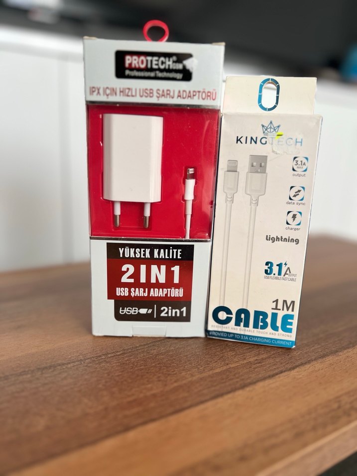 İPhone şarj aleti ve 3.1A çıkışlı USB şarj kablosu