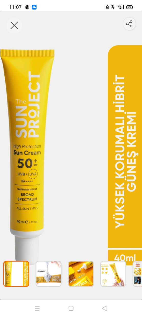 SPF 50+ yüksek koruma sağlayan, UVB ve UVA ışınlarına karşı geniş spektrumlu suya dayanıklı güneş kremi. Tüm cilt tiplerine uygundur, 40 ml. Ürünü 2 kere kullandım temiz sadece kutusu yoktur.