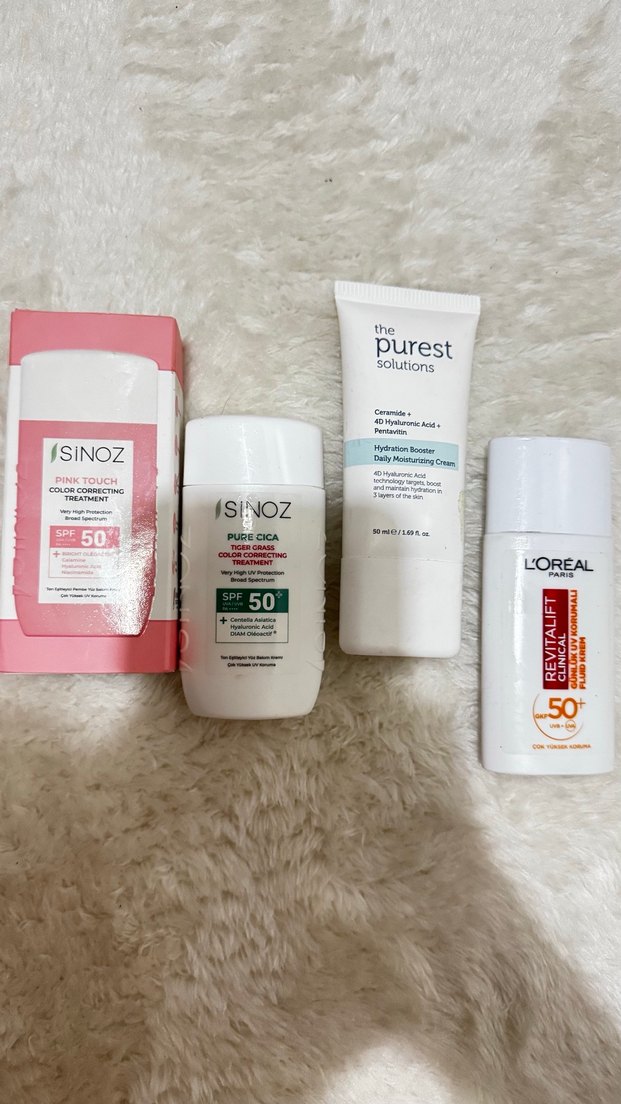 ISINOZ ve L'OREAL markalarından SPF 50+ yüksek koruma sağlayan güneş kremleri, renk düzeltici ve canlandırıcı etkilerle, The Purest Solutions günlük nemlendirici krem içerir. ☀️pembe sınoz satıldı fıyat sorun lütfen 200 tl tanesi ılan acıcam
