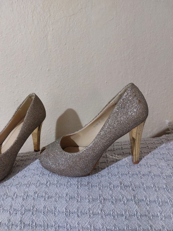 gold Simli Yüksek Topuklu Ayakkabı çok sağlam ve şık, nişanımda bikaç saat giydim