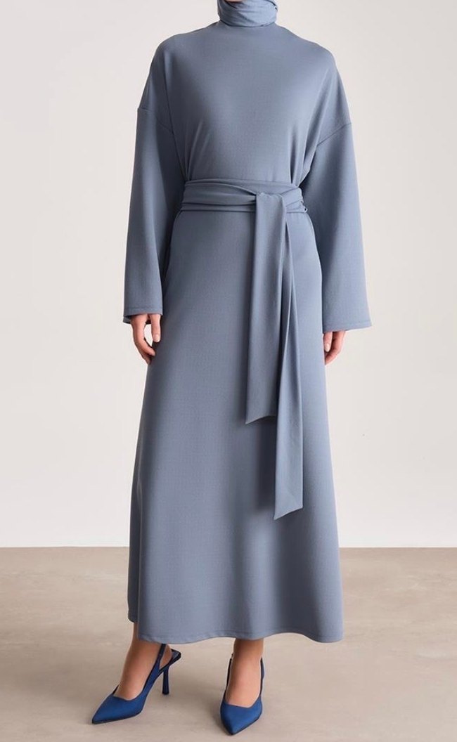 Bedeni 2, 40-42 beden için tam olur bir kere giyildi. Yeni gibi, esnek kumaş, indigo rengi uzun elbise. 2025 nisan ayında satın alındı.