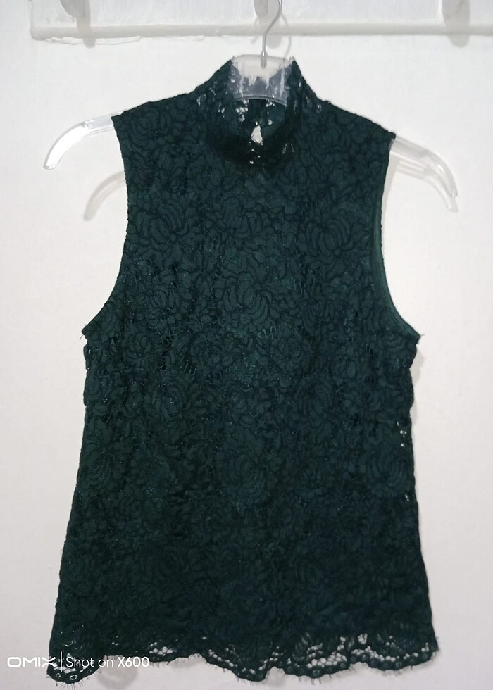 Yüksek Yaka Dantelli Bluz