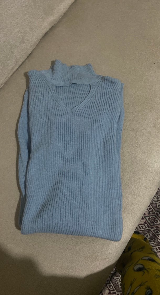 Yüksek Yaka Mavi Triko Kadın elbise