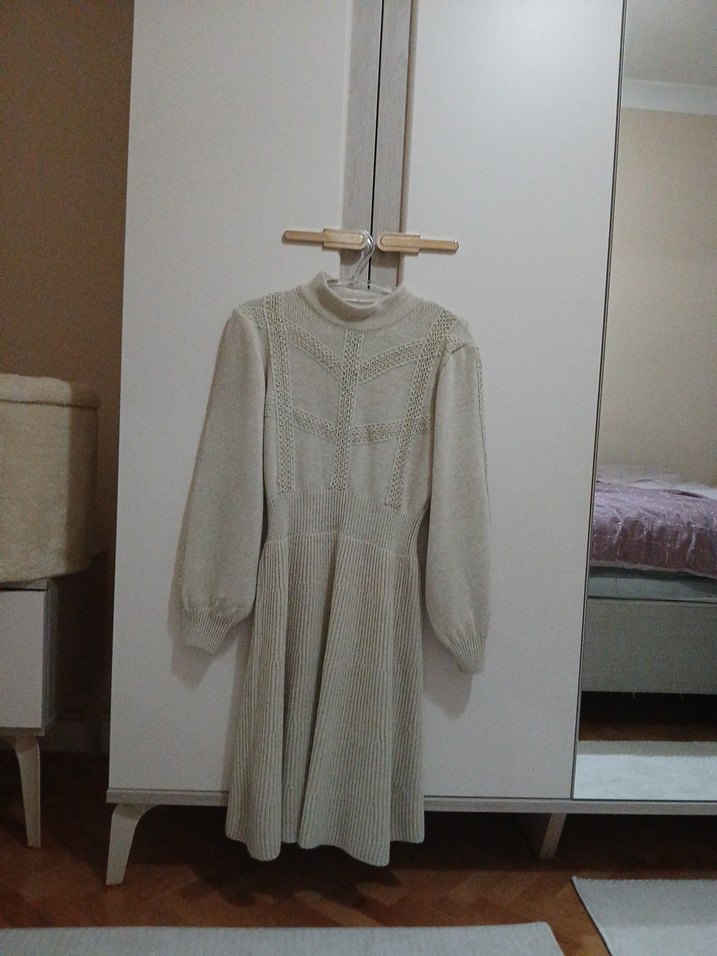Yüksek Yaka Örgü Keten Midi Kadın Kazak