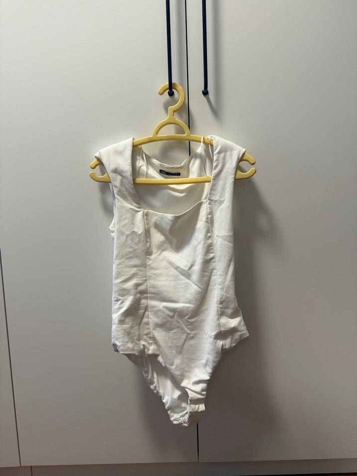 Yüksek yakalı, kolsuz beyaz ince fit atlet body. Normal midi boy ve düz dokulu, desensiz yapıya sahiptir.