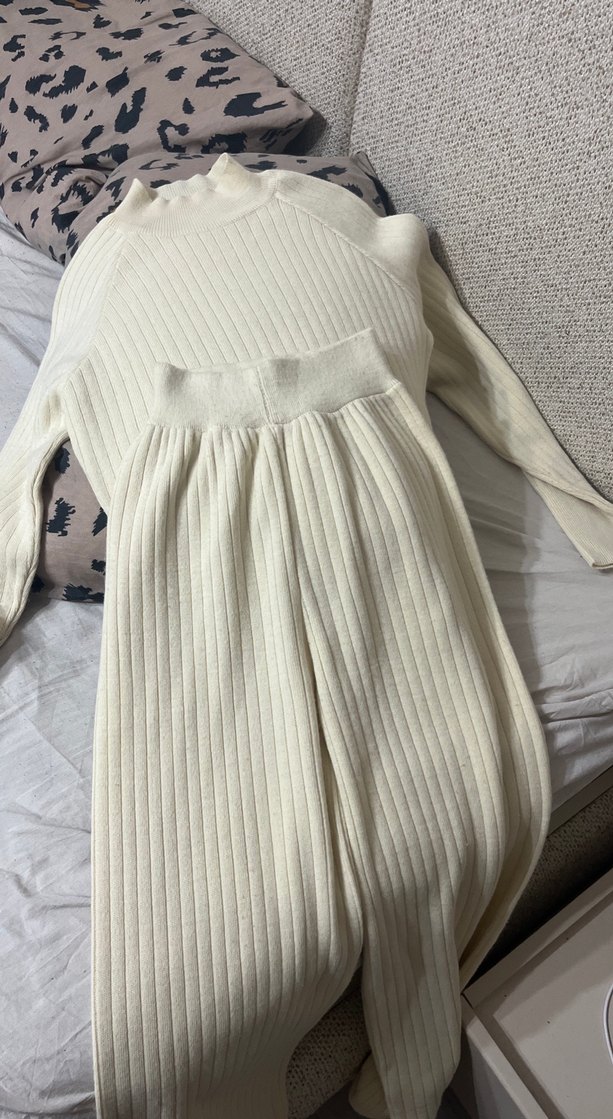Yüksek yakalı, uzun ve vücuda oturan beyaz triko elbise, pamuklu yumuşak kumaştan üretilmiştir. Fitilli dokusu şıklık ve rahatlık sunar. Günlük kullanım için uygundur.