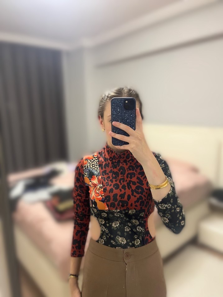 Yüksek Yakalı, Desenli,Kadın Bluz