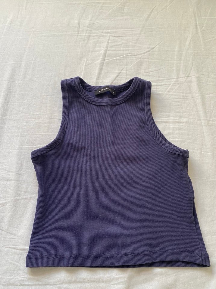 lacivert renkli, yüksek yakalı ve kolsuz, pamuk kumaştan yapılmış dar kesim kadın atlet. Günlük kullanıma uygun sade ve normcore tarzda.