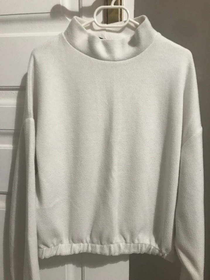 Yüksek yakalı ve uzun kollu, yumuşak ve sıcak kumaştan yapılmış kadın sweatshirtü. Rahat kesimi ile günlük sokak stili için uygundur.