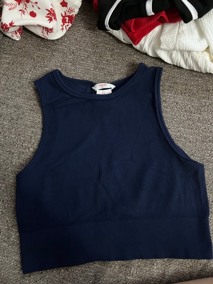 Yüksek Yakalı Kolsuz Lacivert Crop