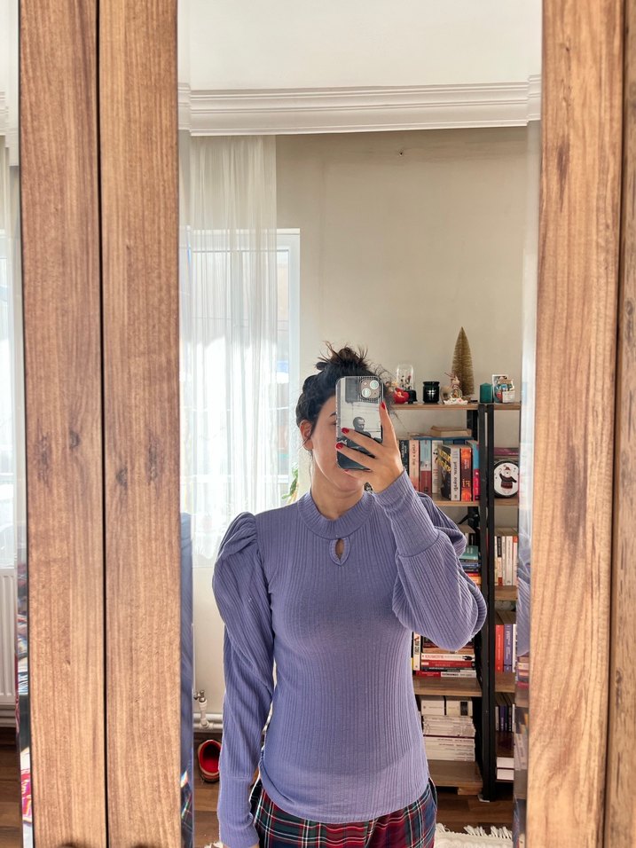 Yüksek Yakalı Mor Fitilli Kadın Kazak