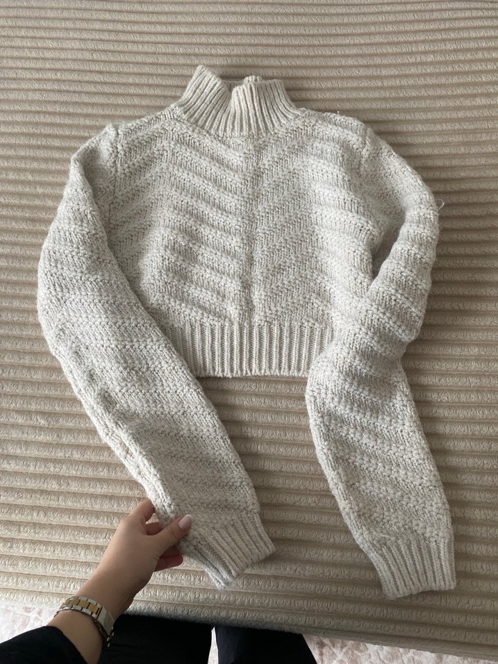Yüksek Yakalı Örgü Beyaz Kadın Kazak