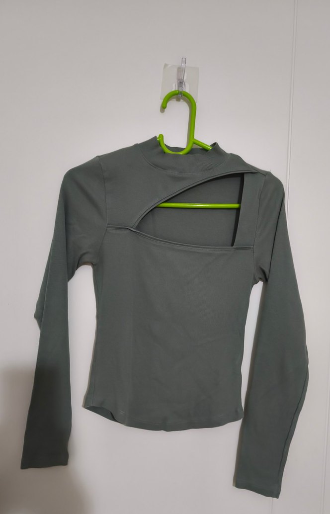 Yüksek yakalı, uzun kollu ve fitted kesime sahip gri kadın bluz, özel pencere yırtmaç detayıyla dikkat çeker. Yumuşak pamuklu kumaştan üretilmiştir.