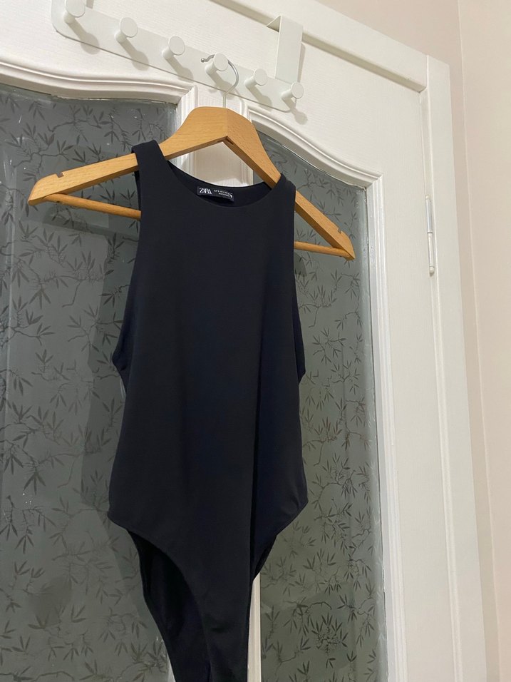 Yüksek yakalı, kolsuz, fitted kesim siyah body. Normal midi boyunda ve desensizdir.