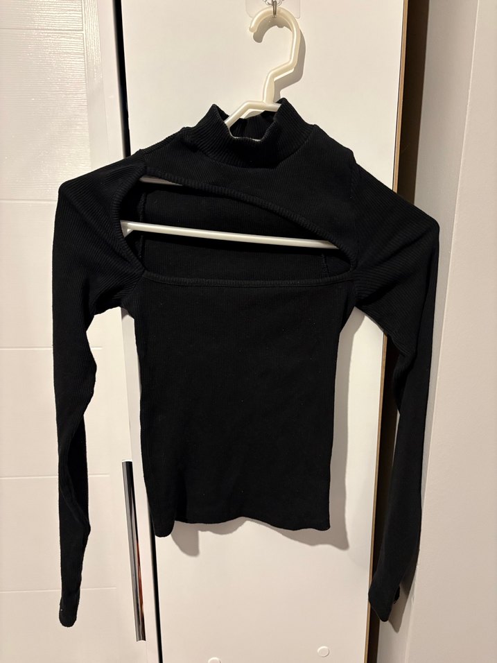 Yüksek yakalı, uzun kollu, siyah dar kesim kadın triko. Sentetik kumaştan, yırtmaç detayıyla günlük kullanıma uygun goth ve athleisure tarzda.