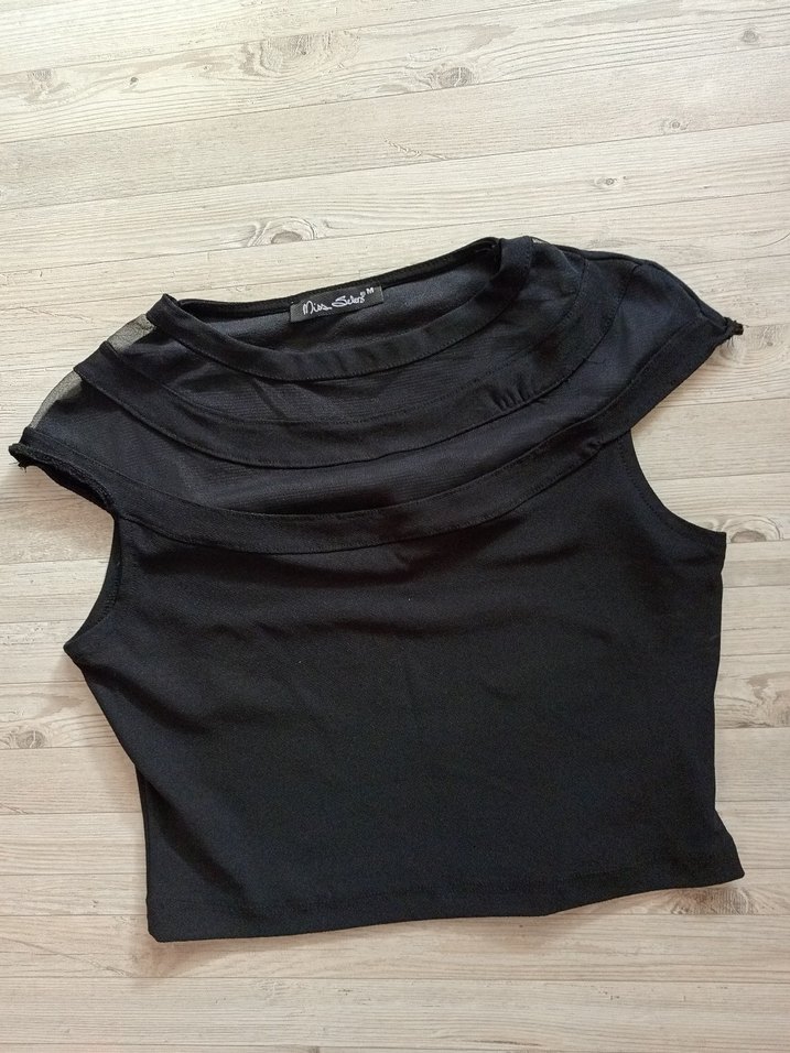Yüksek yakalı, kolsuz ve ince kesimli siyah crop top. Nefes alabilen keten kumaştan, sade gotik tarzda, dış mekan kullanımı için uygun.