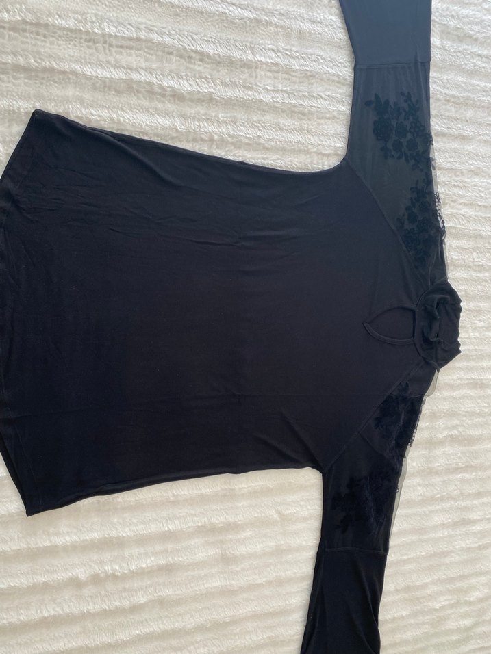 Yüksek Yakalı Siyah tül detaylı bluz