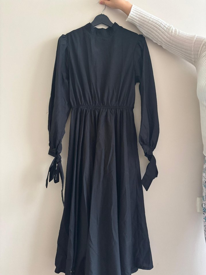 Yüksek Yakalı Siyah Uzun Kadın Elbise