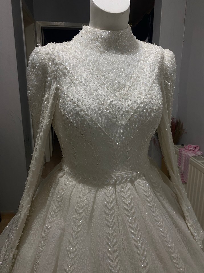 Yüksek Yakalı Uzun Kollu Prenses Gelinlik