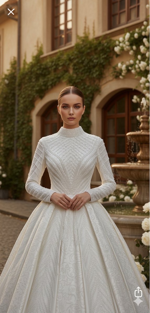 Yüksek Yakalı Uzun Kollu Prenses Gelinlik