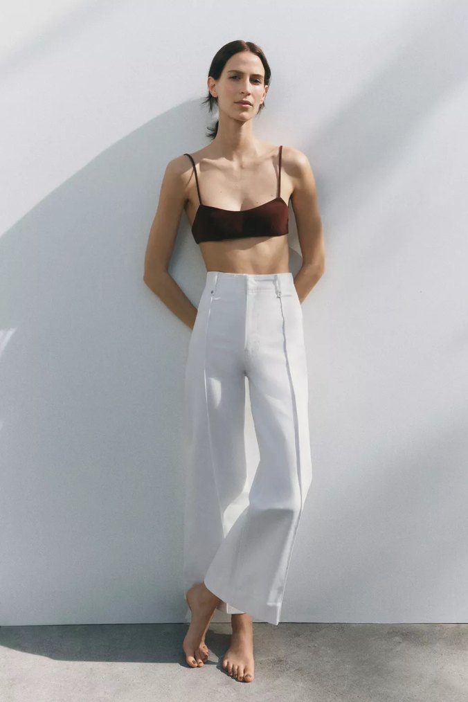 RAHAT KESİM - BİLEK BOY - YÜKSEK BEL ZARA KADIN KOLEKSİYONU Pamuk karışımlı iplikten üretilmiş yüksek bel jean. Kemer köprülü. Arka yama cepli. Önü belirgin dikiş detaylı. Geniş paça. Önden fermuar, düğme ve metal kanca kapamalı. ORJİNAL