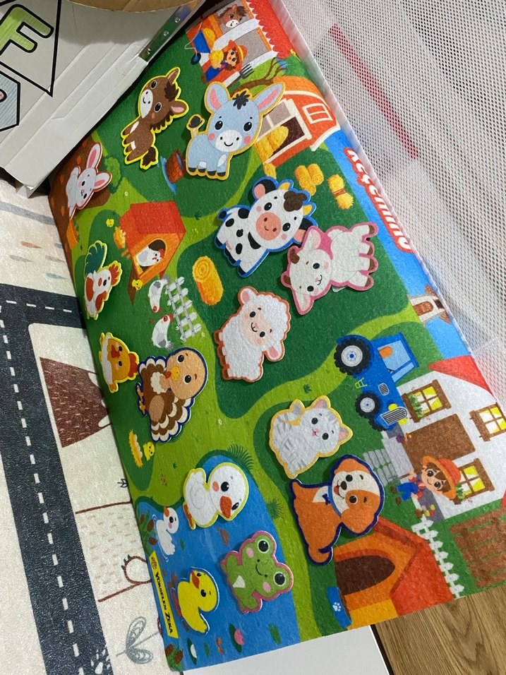 Canlı renklerde çiftlik hayvanları temalı çocuk yapbozu, çocukların ilgisini çekmek için tasarlanmıştır.