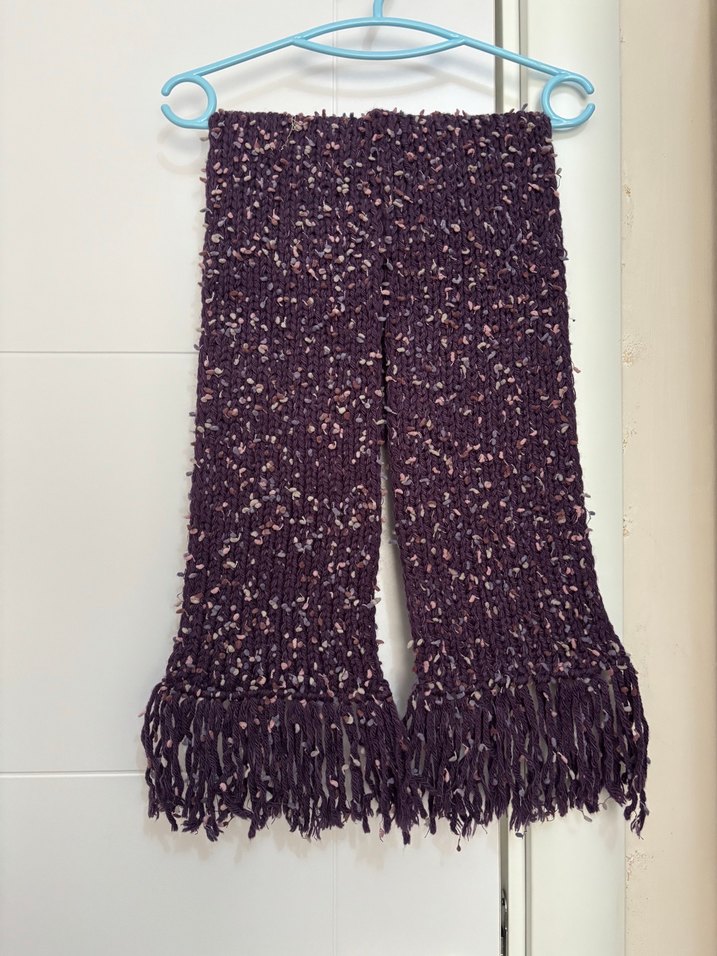 Koyu mor renkli, örgü kadın şalı, püsküllü ve bohem-retro tarz yumuşacık kaliteli ipten örülmüş atkı