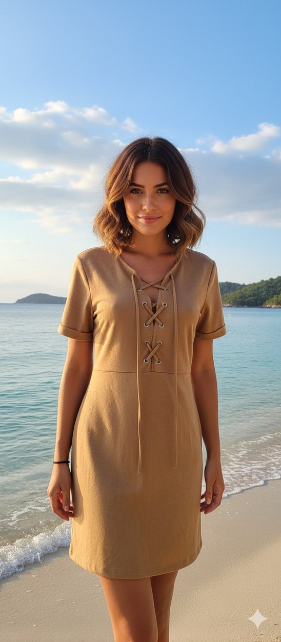 yumuşacık tok kumaşlı güzel bir elbise önü bağcıklı az kullanıldı kusursuz markası temsili