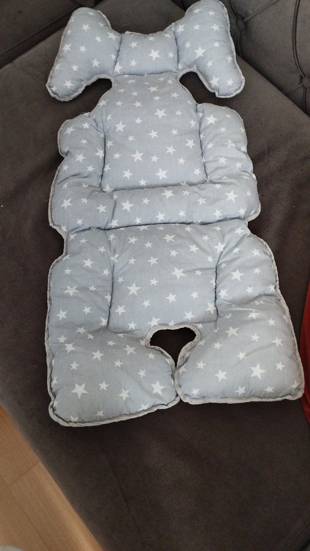 Yumuşak gri kumaştan yapılmış, yıldız desenli bebek minderi, uyku ve dinlenme için rahatlık sağlar puset için uygundur