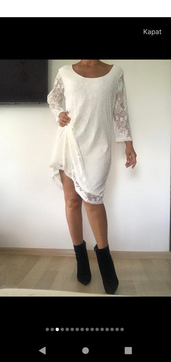 Yumuşak Güpür Muhteşem Beyaz Elbise